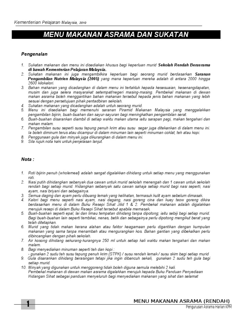 Bahan Asrama Buku Menu Makanan Asrama Kpm Resepi Standard 2018 3