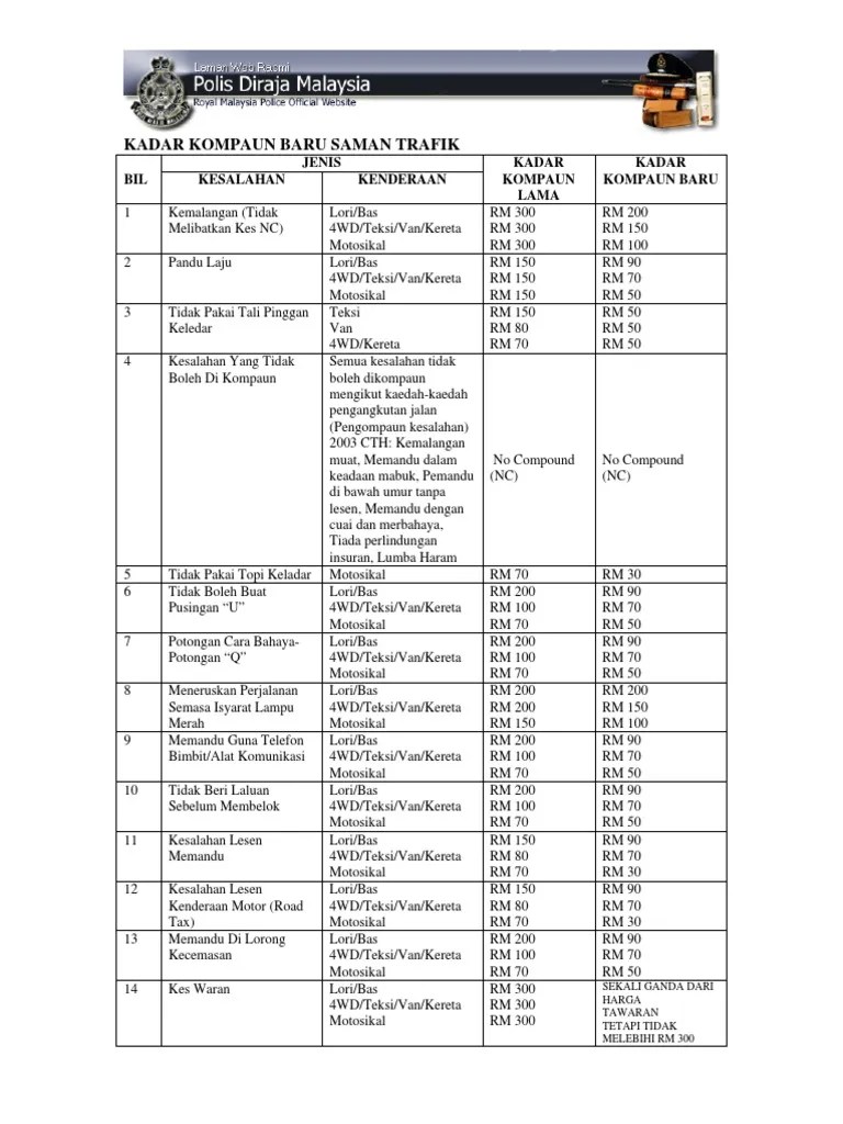 Pdrm Nafi Keluarkan Jadual Kompaun Saman Trafik Paultan Org