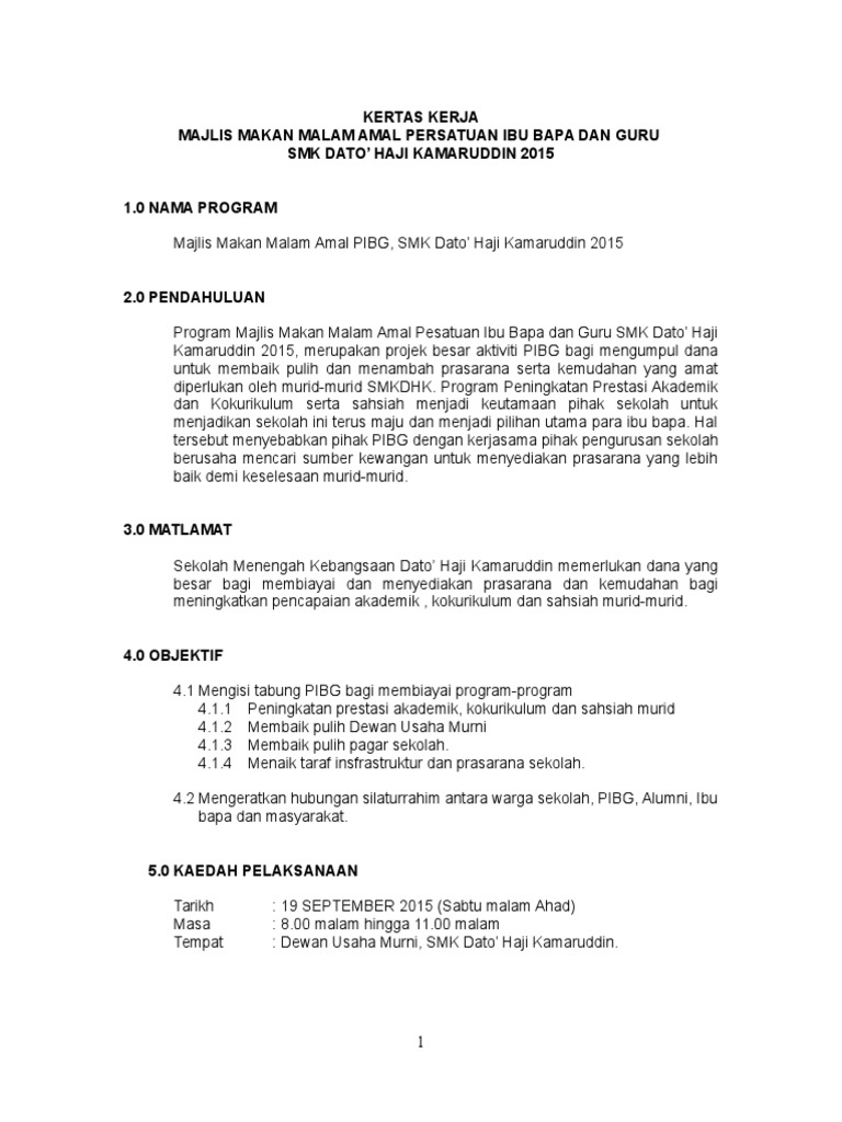 Contoh Kertas Kerja Mohon Sumbangan Pibg Contoh Jari