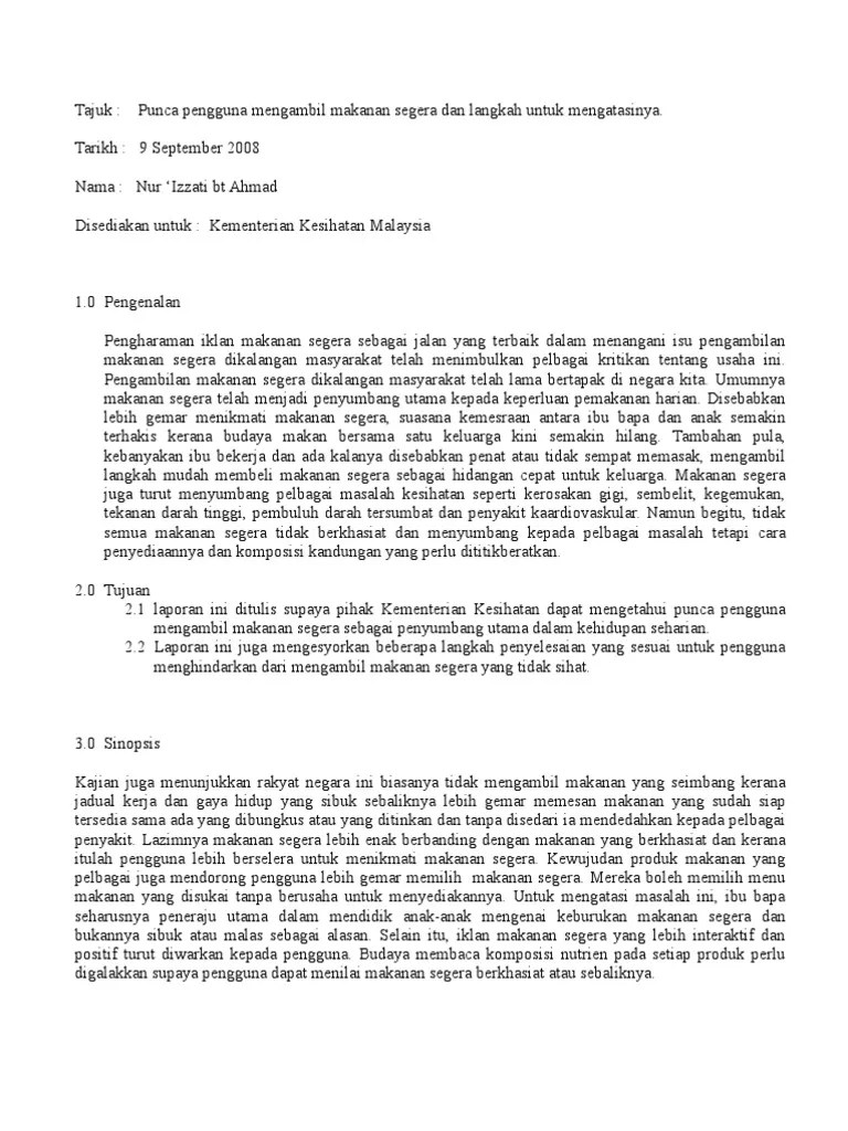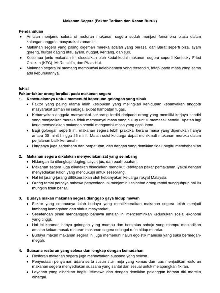 Faktor Pengambilan Makanan Segera Dalam Kalangan Masyarakat