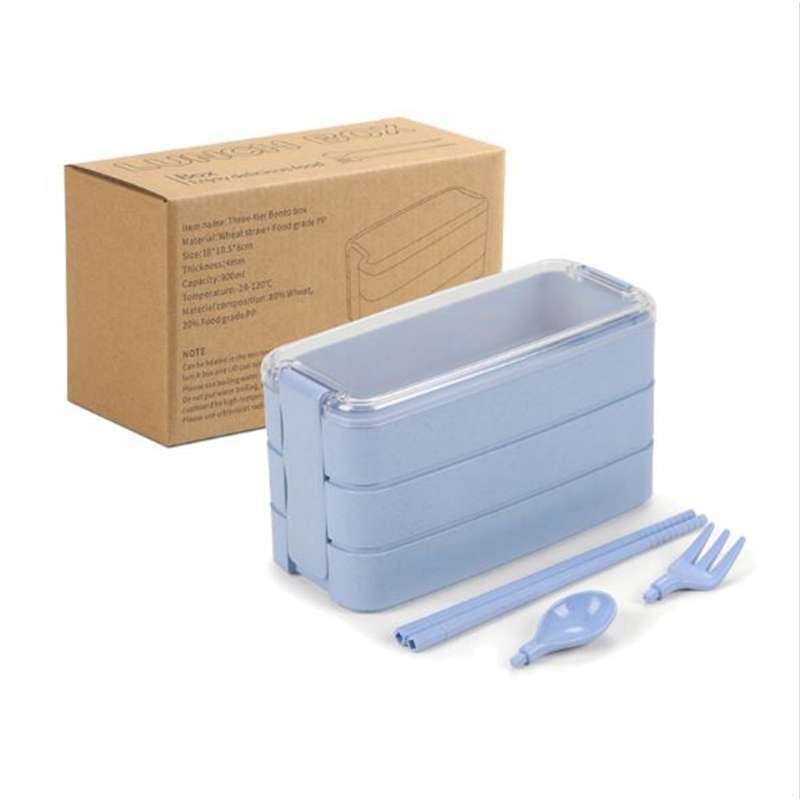 Jual Tempat Makan Lunch Box Kotak 3 Susun Bahan Gandum Set Sendok Garpu Online Februari 2021 Blibli