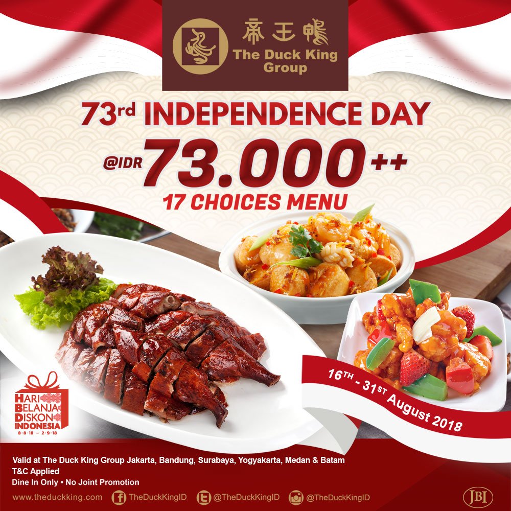Grand Indonesia On Twitter Commemorating The 73rd Indonesian Independence Day The Duck King Group Restaurant Also Enlivened By Giving A Special Promo Of 17 Options Menu With Special Price Rp73rb
