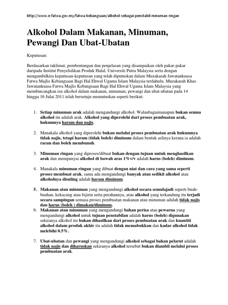 Majlis Fatwa Kebangsaan Koleksi Fatwa Berkaitan Alkohol Dalam Makanan Dll Al Ahkam Net 1434