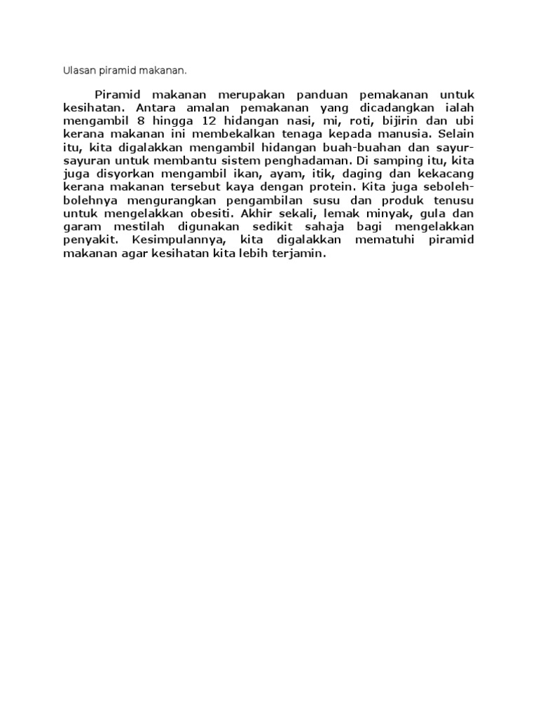 Contoh Ulasan Karangan Piramid Makanan Pt3 Bahasa Melayu