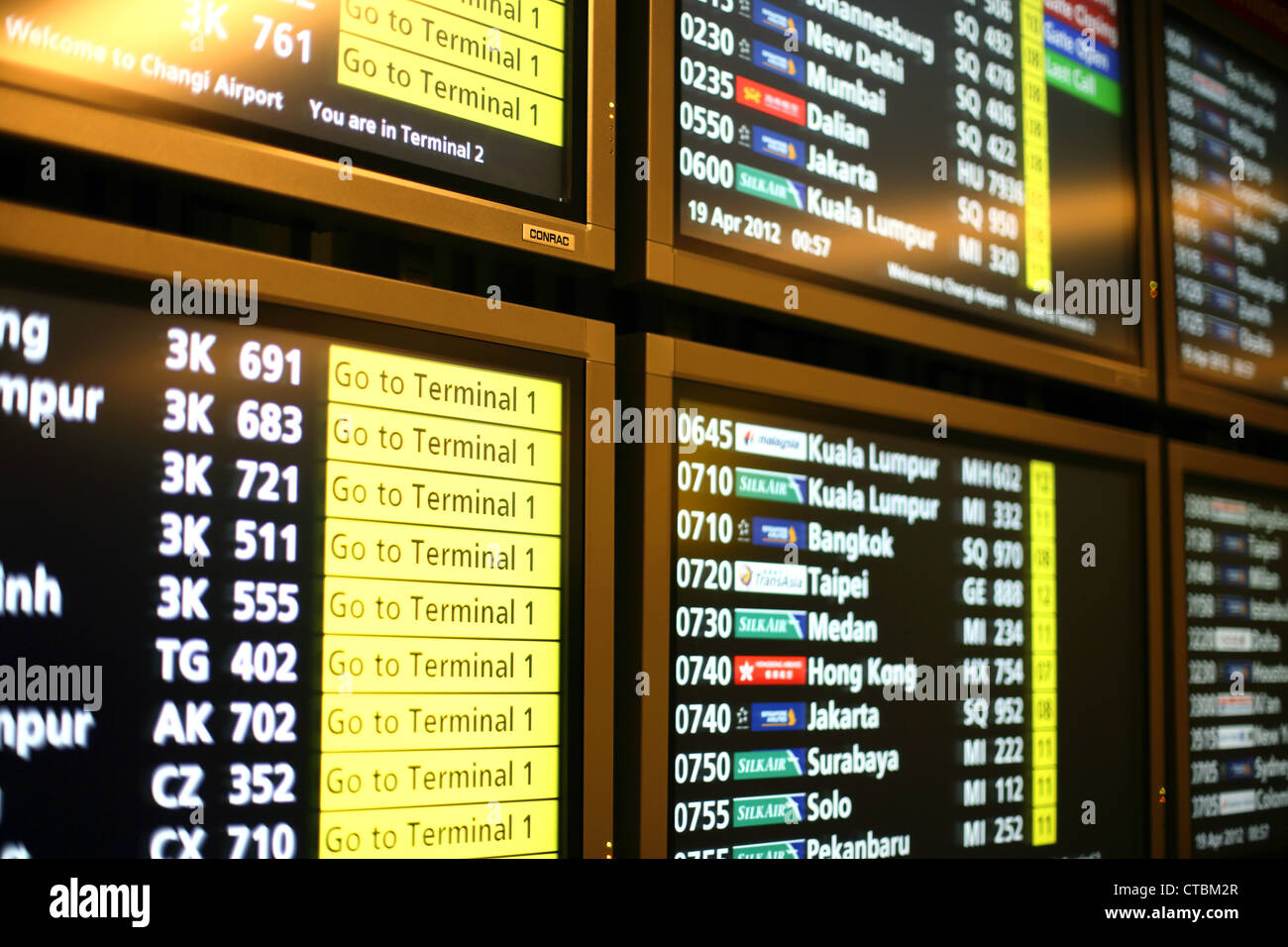 Electronic Departure Board Sign With Flight Destinations At Changi Stock Photo Alamy