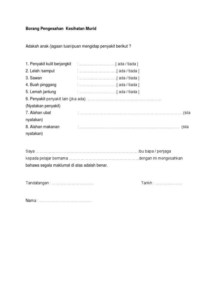 Borang Pengesahan Kesihatan Murid Docx