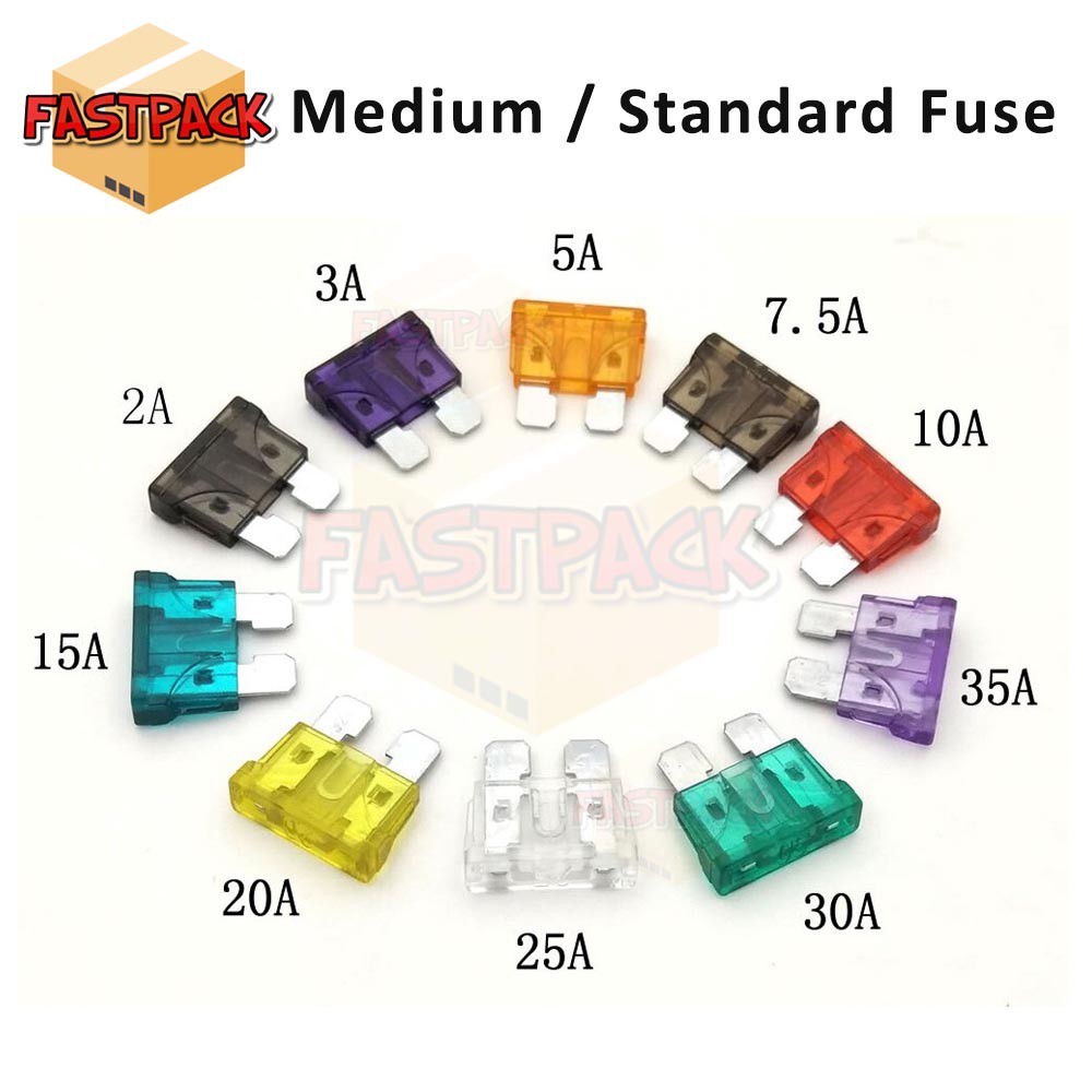 Fp 50 100pcs Medium Standard Fuse Motorcycle Car Lorry Vehicle Fius Motosikal Kereta Lori 5a 7 5a 10a 15a 20a 25a 30a Shopee Singapore